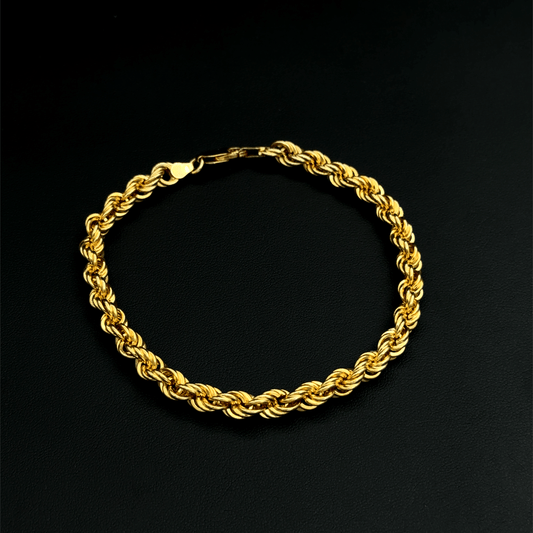 9CT Yellow Gold Pre-Owned Solid Rope Bracelet - 9"- 24.2G