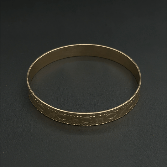 9CT Yellow Gold Patterned Bangle - 8.2"- 18.6G - 1cm Width -