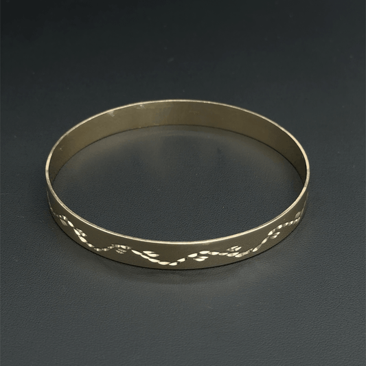 9CT Yellow Gold Patterned Bangle - 7.8"- 11.6G - 1cm Width -