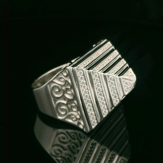 925 Sterling Silver Pyramid CZ Ring - Size W"- 15.3G