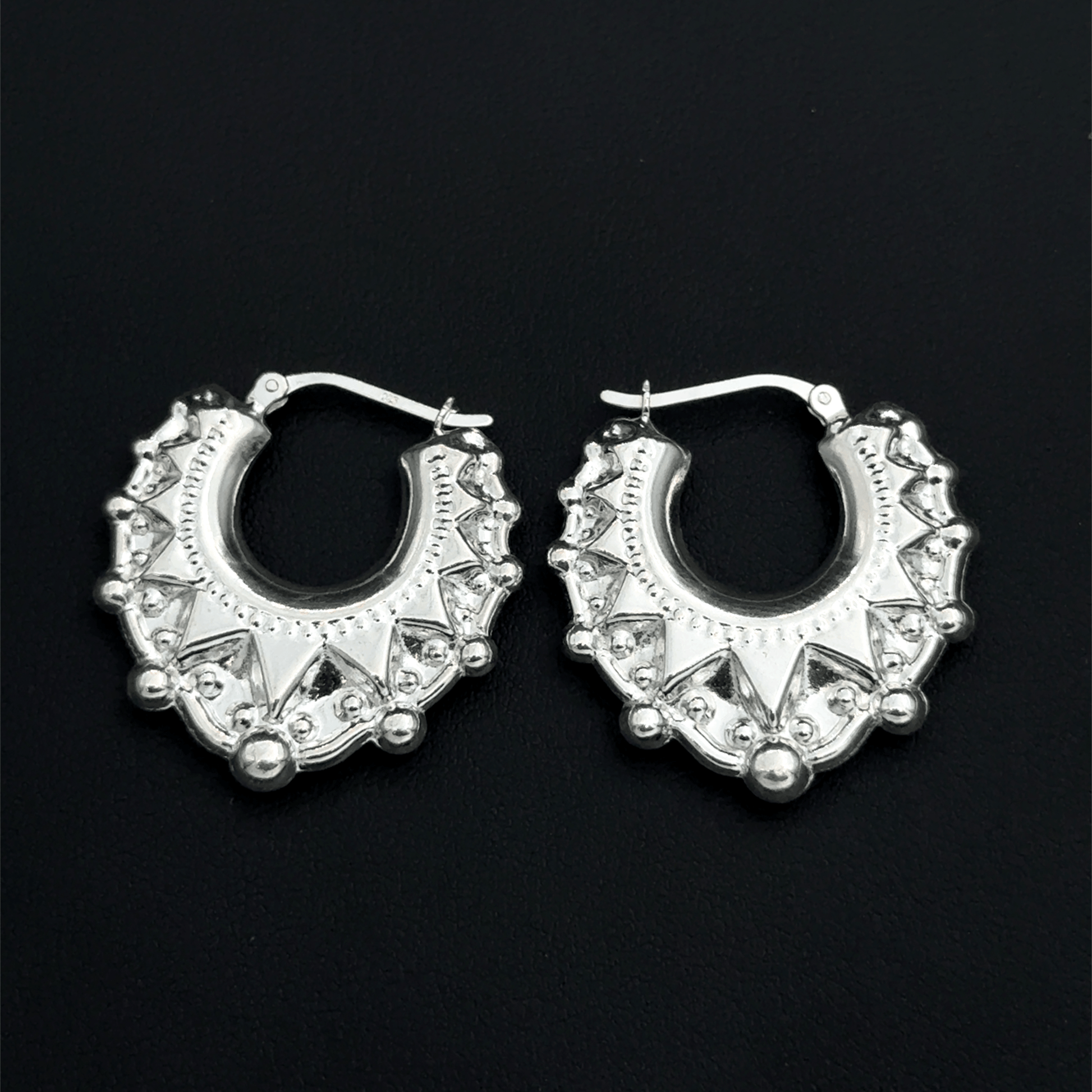 Elevate your style with these 925 Sterling Silver Creole Earrings, weighing a delicate 6.1 grams. Their timeless design offers a versatile accessory that complements any outfit, adding a subtle touch of elegance and sophistication. Crafted from high-quality sterling silver, these earrings promise durability and lasting shine, making them a perfect choice for everyday wear or special occasions.