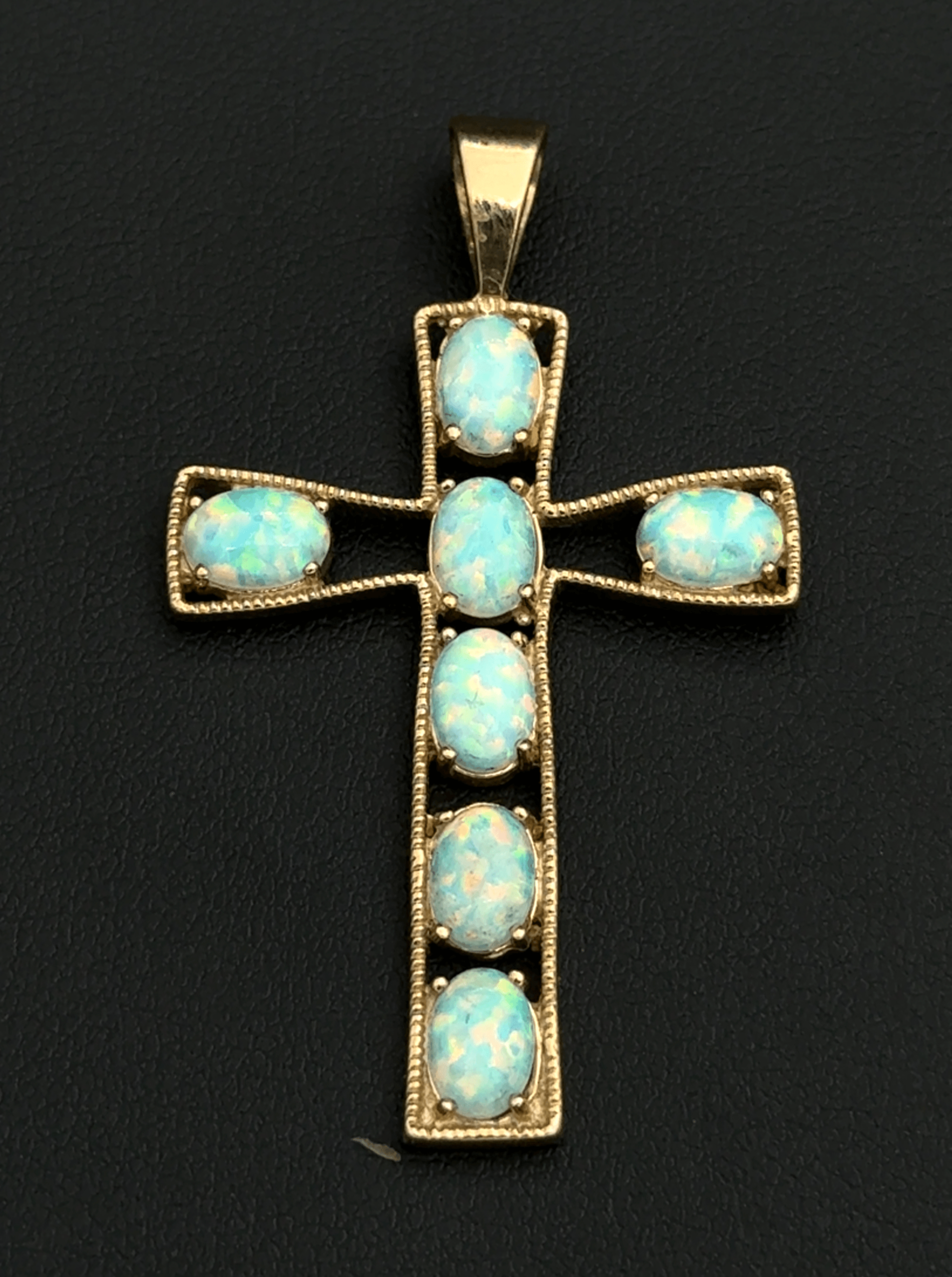 This 9CT yellow gold cross features a captivating opal centerpiece, weighing 4.8 grams for a delicate yet durable design. The opal’s vibrant play of colors adds a unique and elegant touch, making it a meaningful accessory for everyday wear or special moments. Embrace timeless beauty and spiritual significance with this exquisite gold and opal cross.
