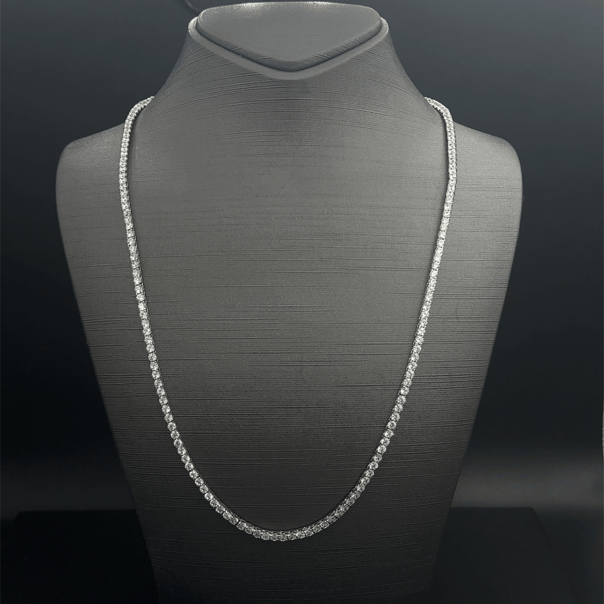 Captivate every room with our stunning 925 Sterling Silver CZ Necklace. Generously sized at 24 inches and weighing a substantial 27.1 grams, this piece offers the perfect balance of elegance and presence. The brilliant cubic zirconia stones catch and reflect light with every movement, creating a mesmerizing sparkle that elevates any outfit. Crafted from premium sterling silver, this necklace combines luxury with everyday wearability, making it an essential addition to your jewelry collection that transitions effortlessly from day to evening occasions.