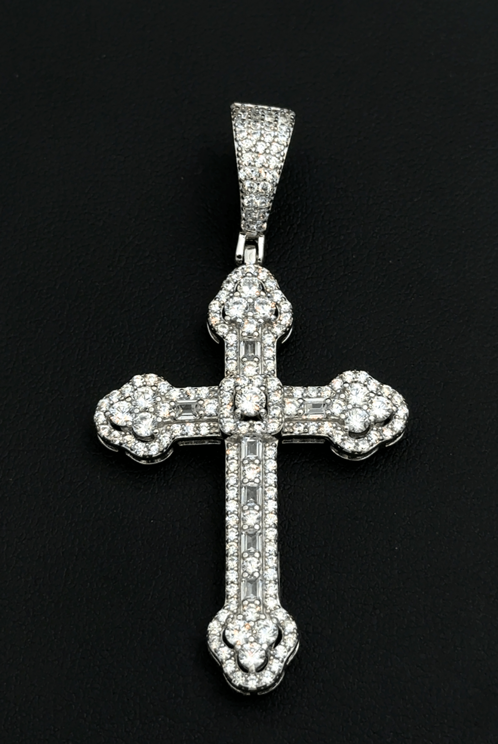 Crafted from high-quality 925 sterling silver, this CZ cross pendant combines timeless elegance with sparkling cubic zirconia stones for a refined look. Weighing 14.4 grams, it offers a substantial feel without compromising comfort. Perfect for daily wear or special occasions, this piece adds a meaningful touch to any outfit while showcasing exceptional craftsmanship. Elevate your jewelry collection with this stunning symbol of faith and style.