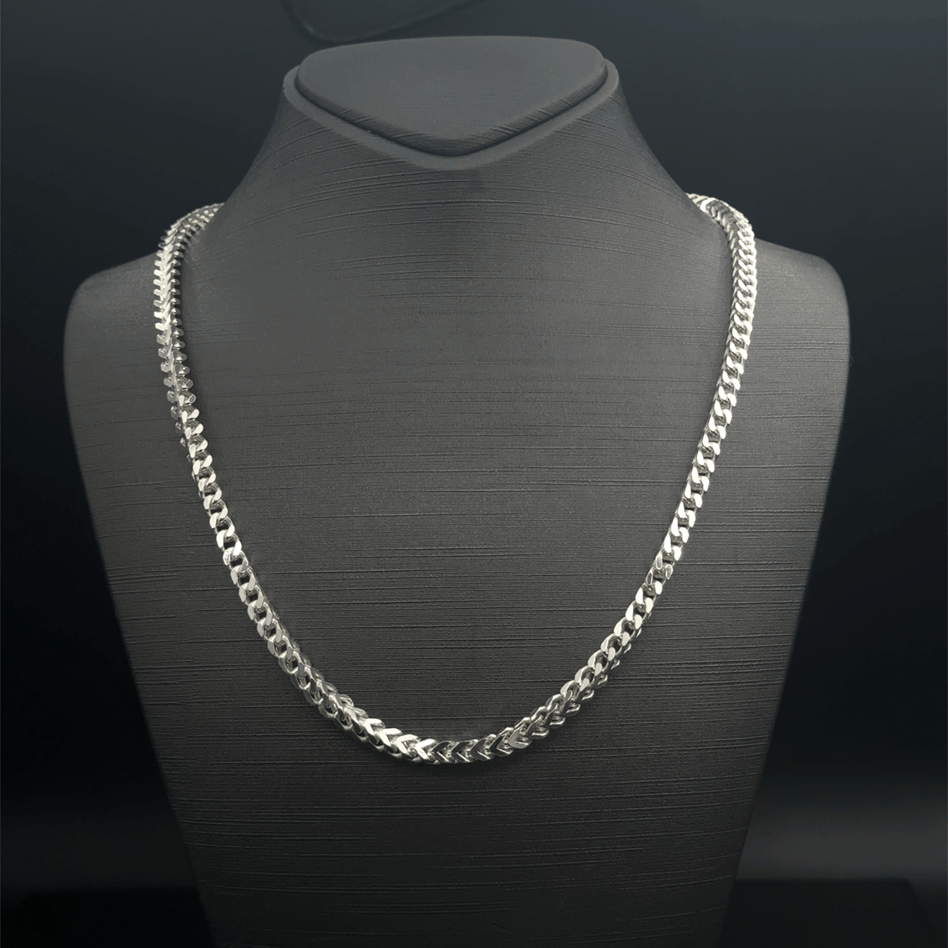 Make a powerful statement with our luxurious 925 Sterling Silver Franco Chain. At 22 inches long and weighing a substantial 62.6 grams, this premium chain combines impressive presence with exceptional craftsmanship. The distinctive Franco link pattern creates a seamless, high-polish finish that catches light brilliantly from every angle. Perfect for elevating any outfit, this investment piece offers both versatility and enduring style that will turn heads for years to come.