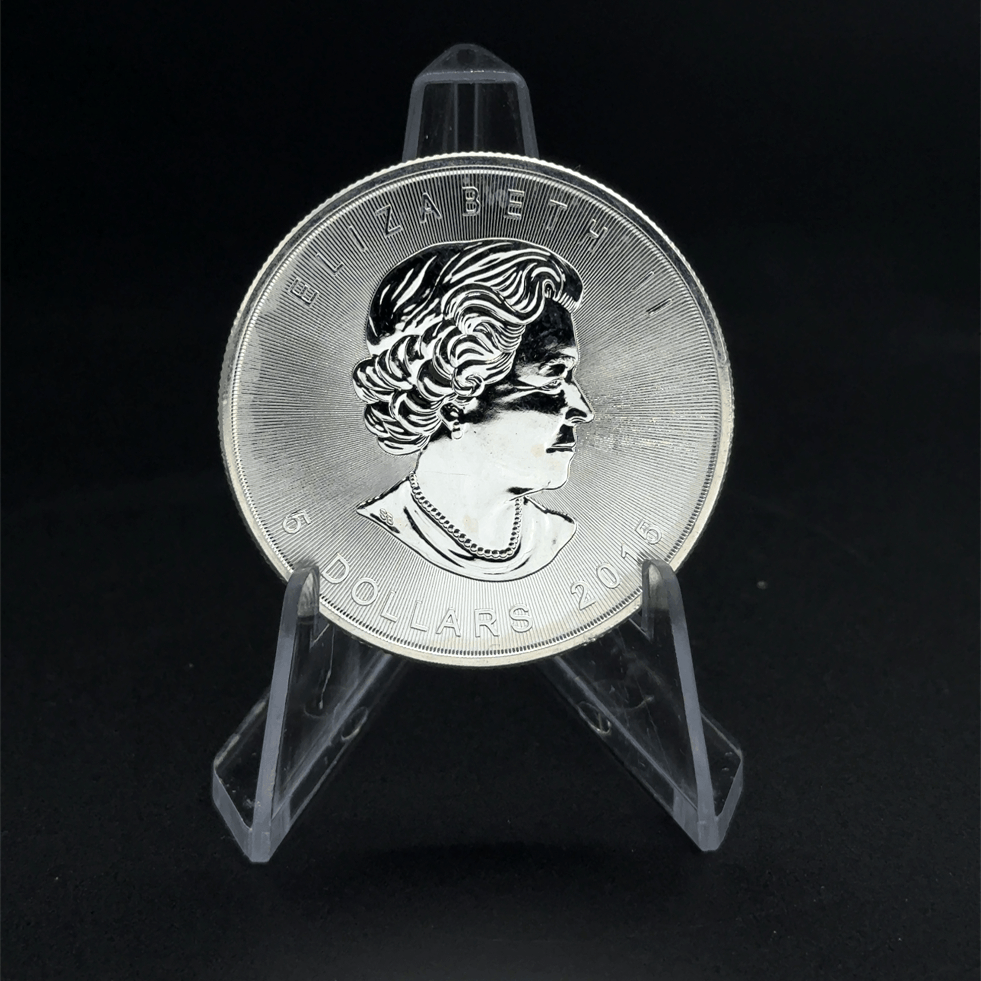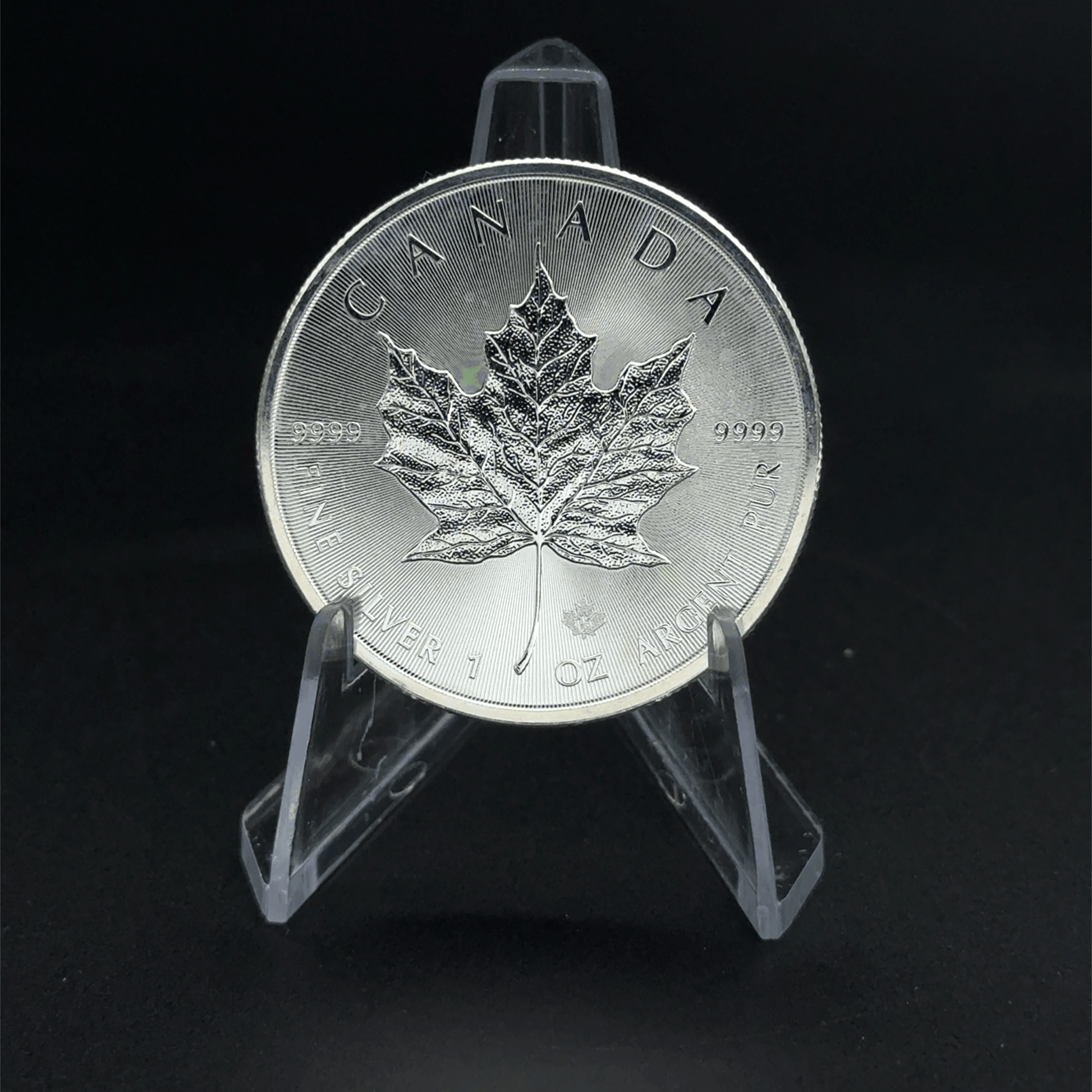 This 1oz Canadian Maple coin is crafted from 999 fine silver, showcasing the iconic maple leaf design that symbolizes strength and heritage. Available in various dates, it combines exquisite detail with pure silver content, making it an excellent choice for collectors and investors seeking both beauty and value in their precious metals portfolio.