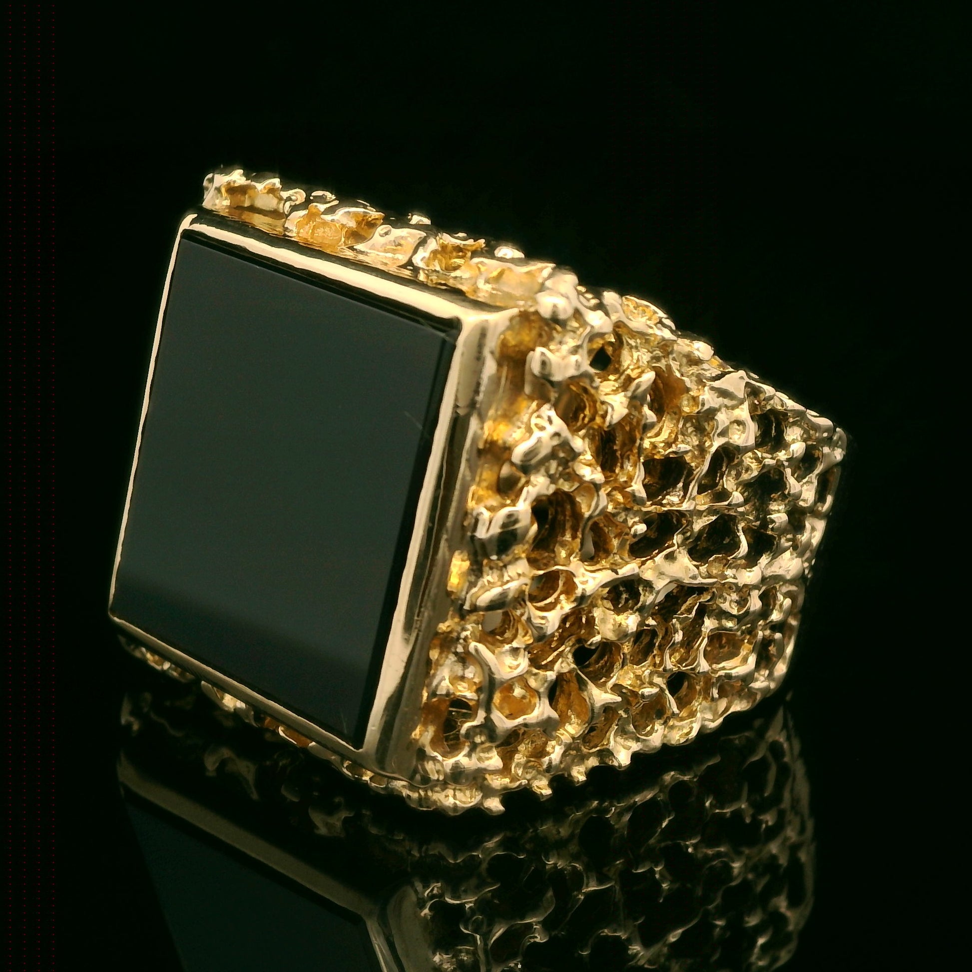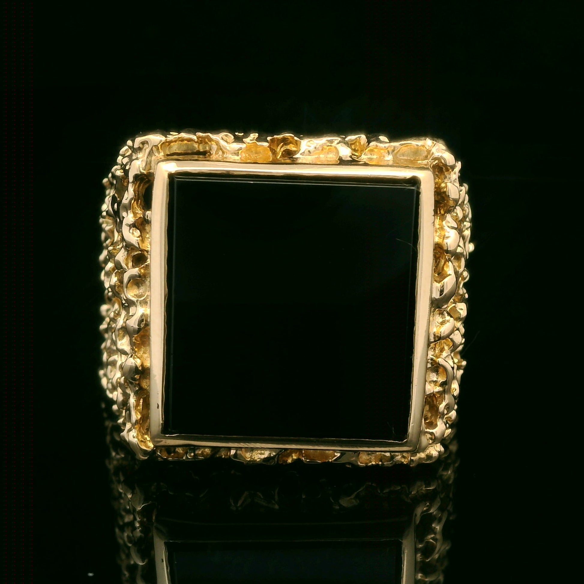 Experience luxury and sophistication with our 9CT Yellow Gold Onyx Signet Ring! Crafted with high-quality onyx and intricately designed in 9CT yellow gold, this ring is perfect for adding a touch of elegance to any outfit. Available in size X, weighing 13.1g. Treat yourself or a loved one to this timeless piece today!