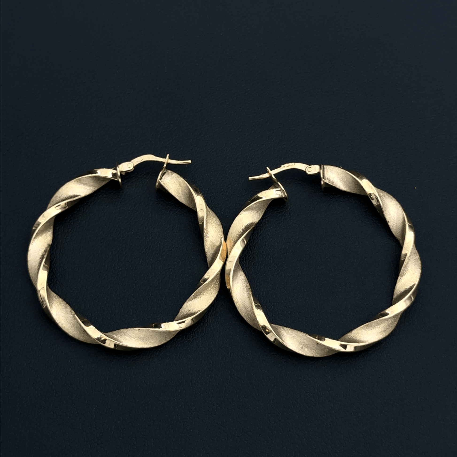 Add a touch of sophistication with these 9CT Yellow Gold Twisted Hoops, weighing 3.5 grams. Their elegant twisted design catches the light from every angle, creating a subtle yet captivating shimmer. Crafted from genuine 9-carat gold, these hoops combine durability with timeless style, making them perfect for daily wear or special occasions. Elevate your jewelry collection with this versatile and eye-catching accessory.
