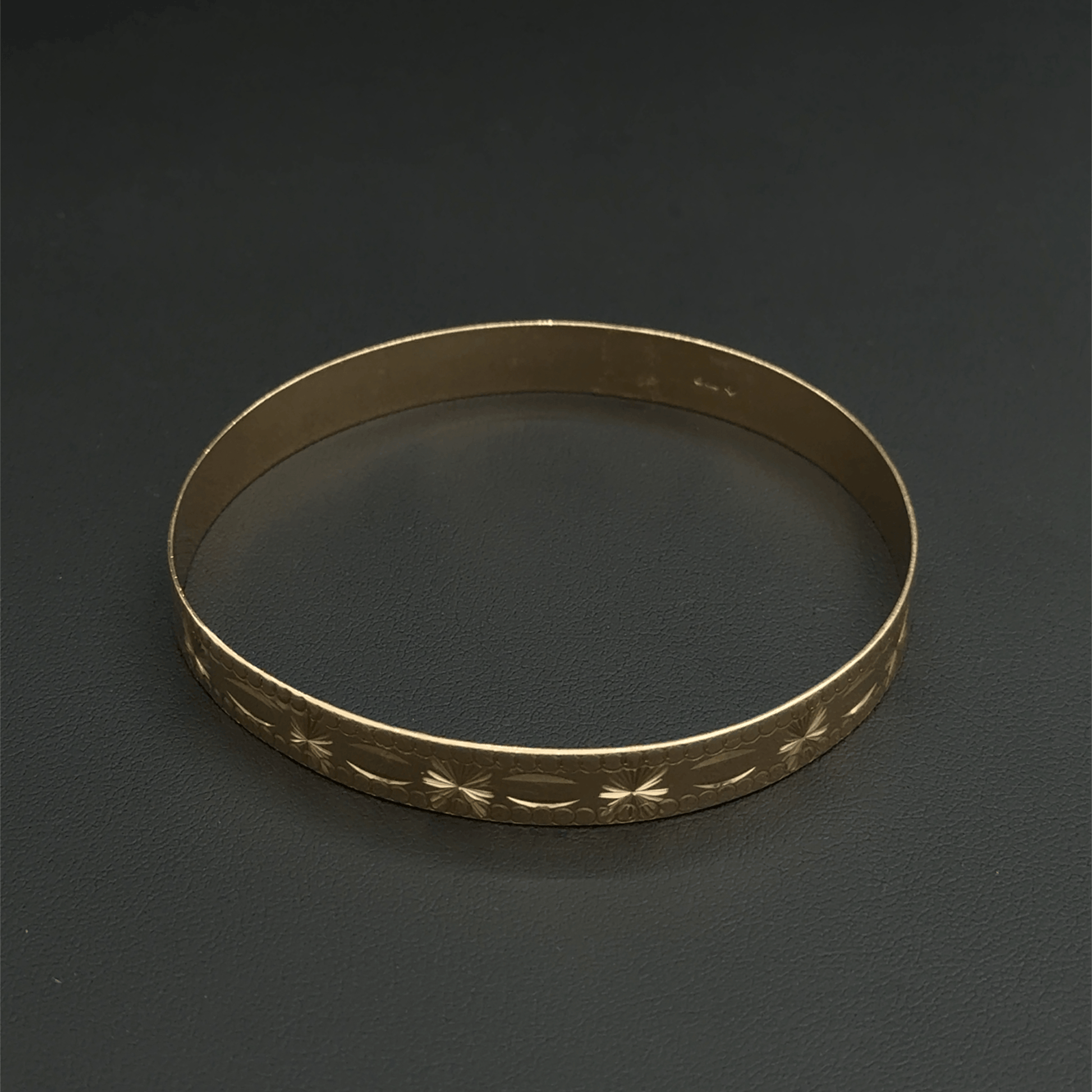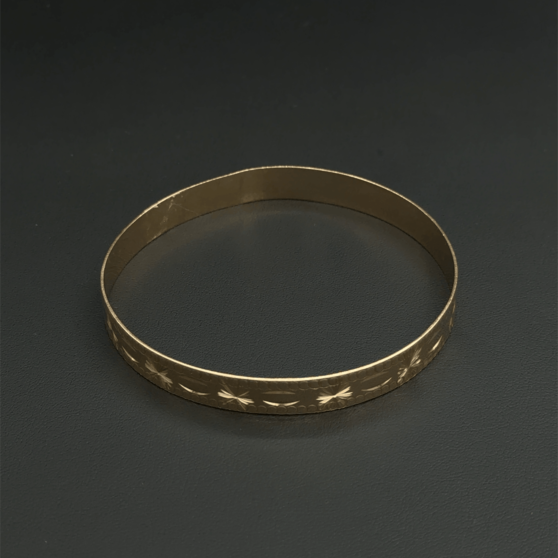 9CT Yellow Gold Patterned Bangle - 7.4"- 17G - 1cm Width -