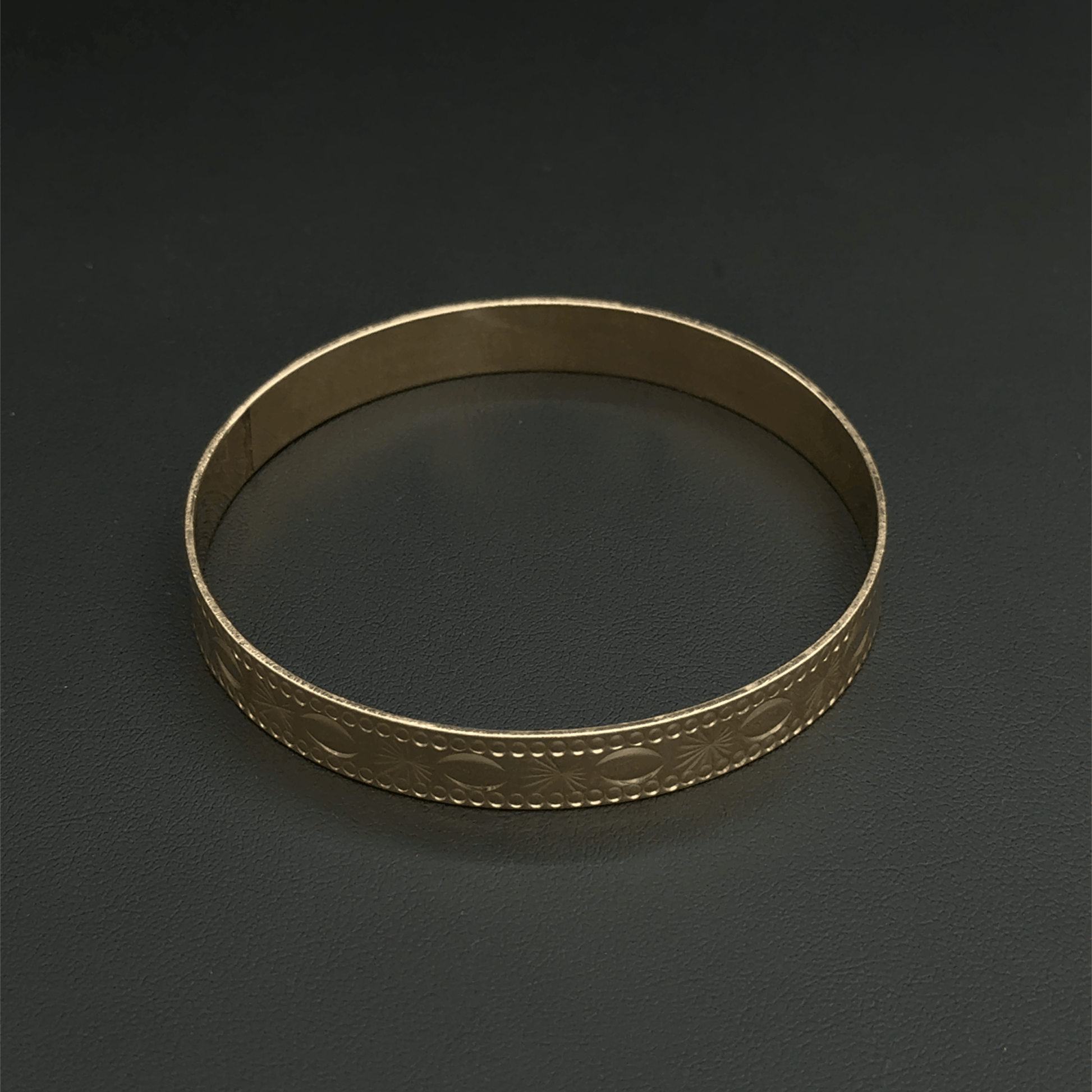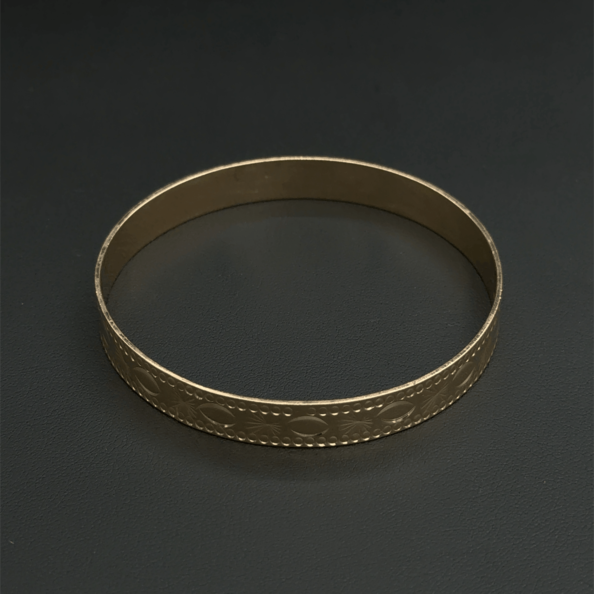 9CT Yellow Gold Patterned Bangle - 7.8"- 11.6G - 1cm Width -